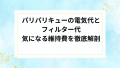 次に、長期的なコストであるランニングコストを見ていきましょう。電気代については、パリパリキューが1回あたり約16円〜45円、ルーフェンが1日あたり約20円と、両者の間に決定的な差はありません。